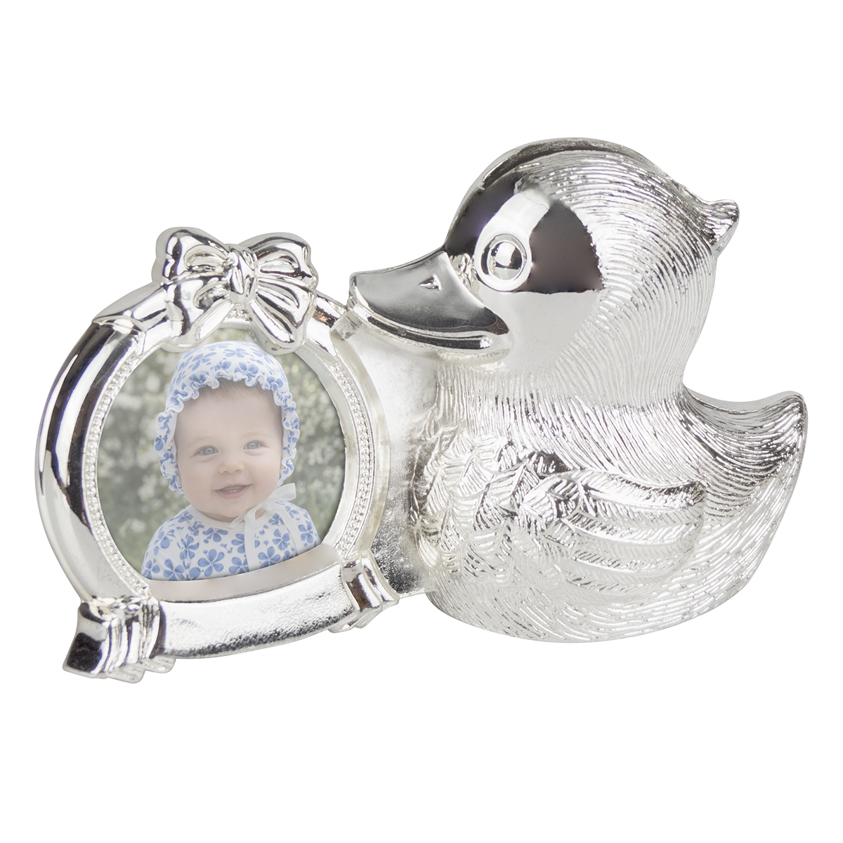 Klassisk ank-sparbössa med fotoram i nysilver.