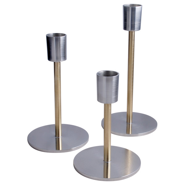 Tenn/mässing-ljusstakar 3-p H18, 15 och 12cm